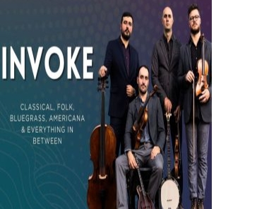Invoke – Nick Montopoli, violin/banjo/vocals; Zach Matteson, violin/vocals; Karl Mitze, viola/mandolin/vocals; Geoff Manyin, cello/vocals – successfully dodges even the most valiant attempts at genre classification. The multi-instrumental quartet encompasses traditions from across America, including bluegrass, Appalachian fiddle tunes, jazz, and minimalism. Fueled by their passion for storytelling, Invoke weaves all of these styles together to form a unique contemporary repertoire, featuring original works composed by and for the group.