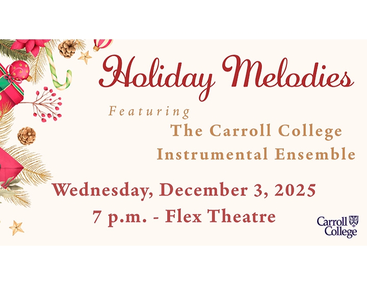 Carroll College invites the community to enjoy Holiday Melodies, a festive evening of music performed by the Carroll College Instrumental Ensemble on Tuesday, December 3, at 7 p.m. in the FLEX Theatre. This free public concert will feature Spanish carols, a spirited Hanukkah selection, and other seasonal favorites to welcome the holiday season.